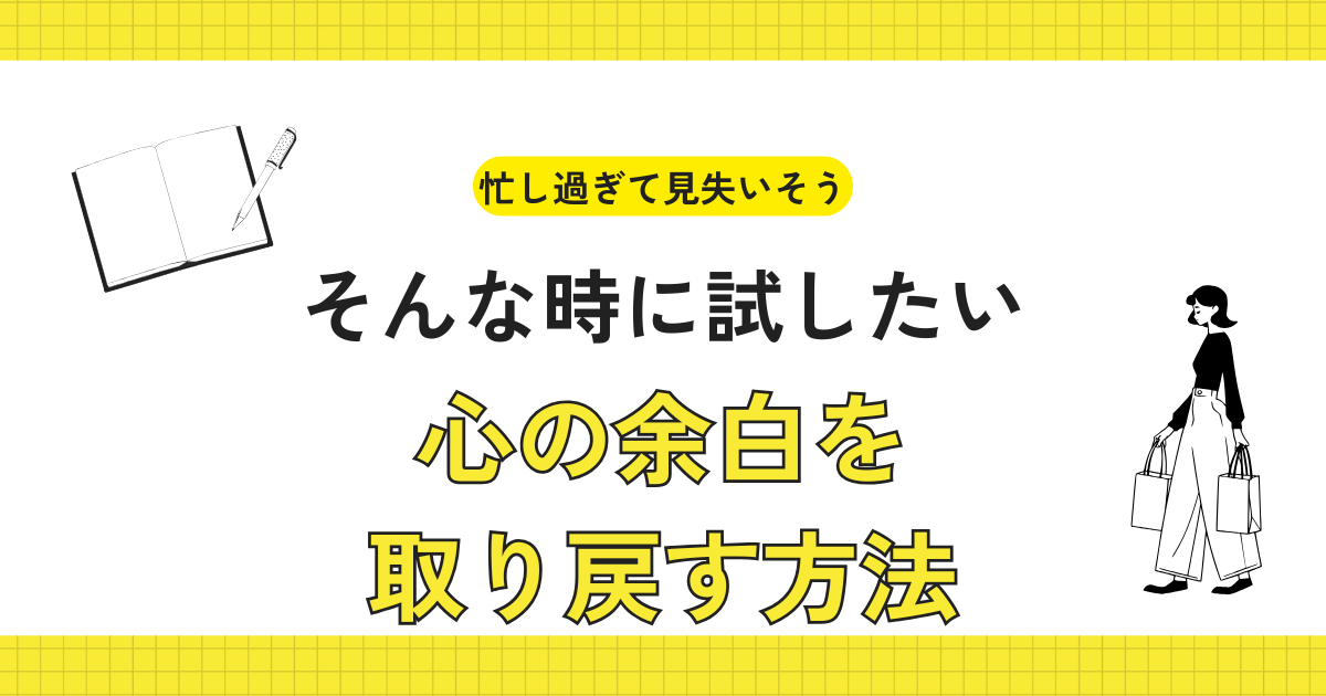 でも、忙しさに飲まれて“自分を見失う”ことは誰にでもあります。